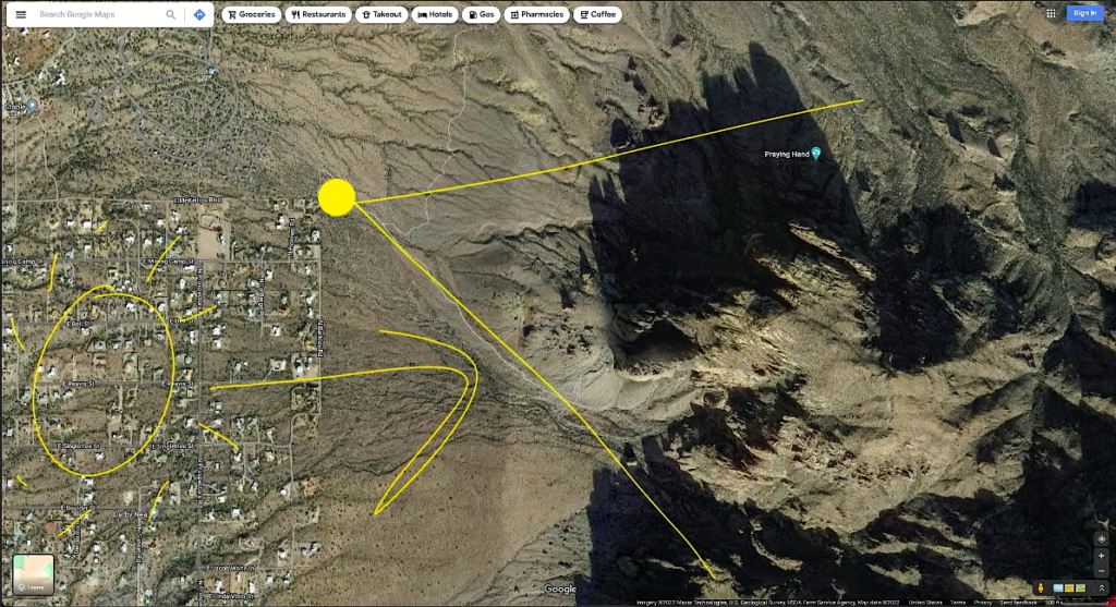 On this night, we set up near the “Praying Hands” rock formation in the Superstition Mountains. Phoenix became our giant light panel, casting a warm glow on the landscape.
