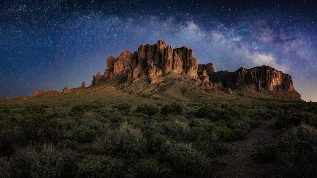 This Superstitions location works best in the first half of the year (I was there in late February), when the Milky Way moves east to west away from Phoenix’s glow. By late summer or fall, you’d be shooting straight into the city light, and the sky would be blown out. So plan your shoot’s location based on research with stargazing tools (I like PhotoPills).